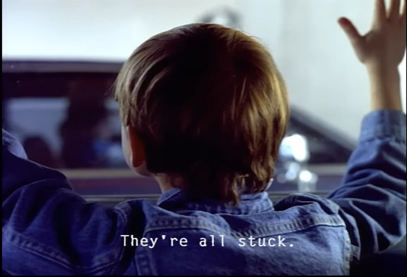 It was after repeated watches and many years, it hit me - it’s their mental chatter. And when you know have this realization and watch the video again, the whole story/stories play differently. It’s almost like you have a full view of each house with the curtains bared. You gape in to see the tension between the fixity facade and the flux mental state as the camera pans from the windows of one car to another.